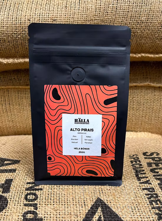 Hälla Kafferosteris exklusiva Peru Alto Pirais kaffebönor - en exceptionell kaffeblandning från den lilla byn Alto Pirais i San Ignacio-området. Fem dedikerade familjer har gått samman för att skapa denna unika kaffesensation på sina kaffegårdar, var och en mellan 1-3 hektar stor och belägen på höjder mellan 1600 och 2000 meter över havet