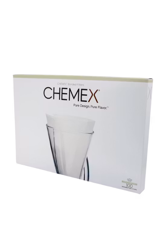 100-pack Chemex-filtersPapierfilters voor Chemex 3 kops (CM-1). Deze filters zijn, in tegenstelling tot bijvoorbeeld Melitta-filters, 20-30% dikker, wat zorgt voor een heel zuivere en zachte kop koffie. De filters hebben een halve maanvorm en worden tot een kegel gevouwen voordat je gaat zetten.